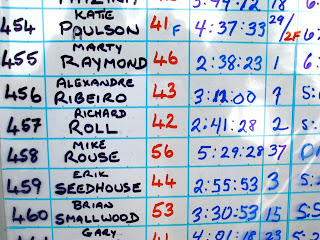 Above, Josef Ajram totally out of it after the run. I gotta give it to him — he really went for it. Out in 3:45 at the marathon mark, only to hit the wall with cramps, blisters, heat exhaustion, you name it. He still finished the run in 8:33, but here he is in medical shock. But after a couple cheeseburgers back at the hotel, he was fine.